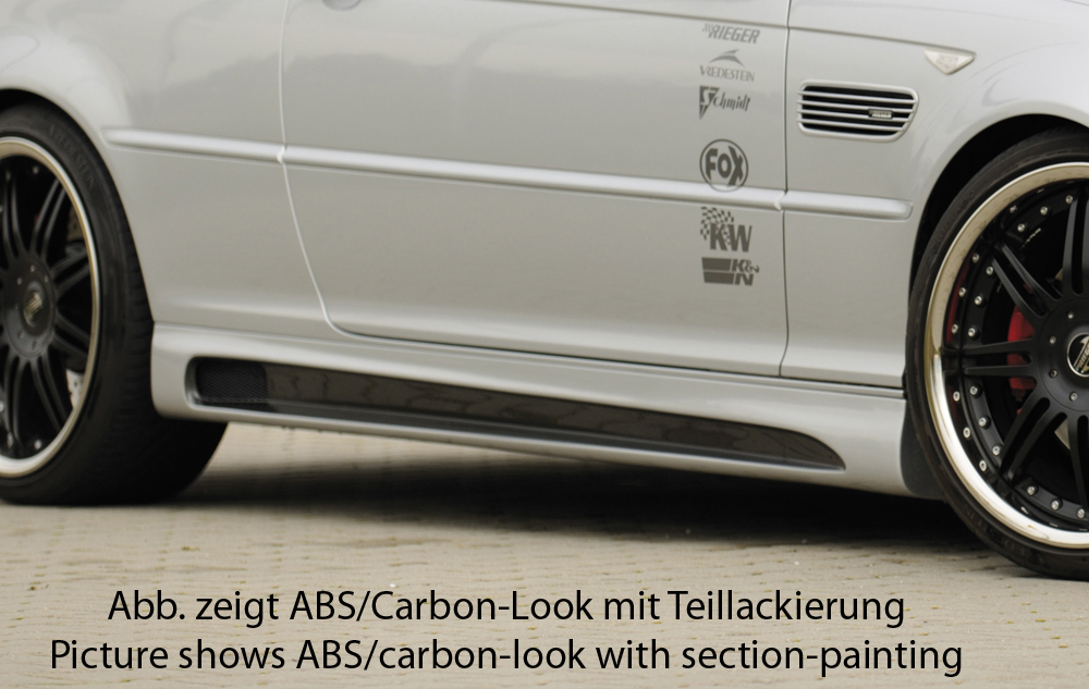 No pierda la oportunidad de transformar su BMW E46: Adquiera hoy mismo los faldones laterales Rieger y descubra cómo pueden mejorar tanto la estética como el rendimiento de su vehículo. ¡Añádalo a su carrito ahora!