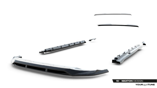 Set completo de elementos aerodinámicos en fibra de carbono prepreg: diseñados para optimizar el flujo de aire y mejorar la estética del vehículo.