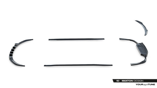 - Mejora aerodinámica y visual: el splitter reduce visualmente la altura del coche y optimiza la estabilidad y el agarre durante la conducción.