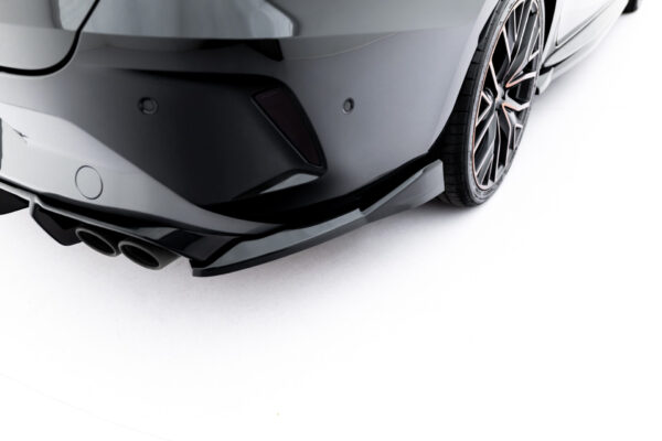 Difusores laterales, faldón trasero, splitters laterales traseros y spoiler cap: componentes diseñados para mejorar la aerodinámica y la estética del vehículo.