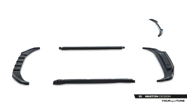 • Mejora aerodinámica y estética: el splitter reduce visualmente la altura del vehículo y aumenta la estabilidad y agarre en carretera.